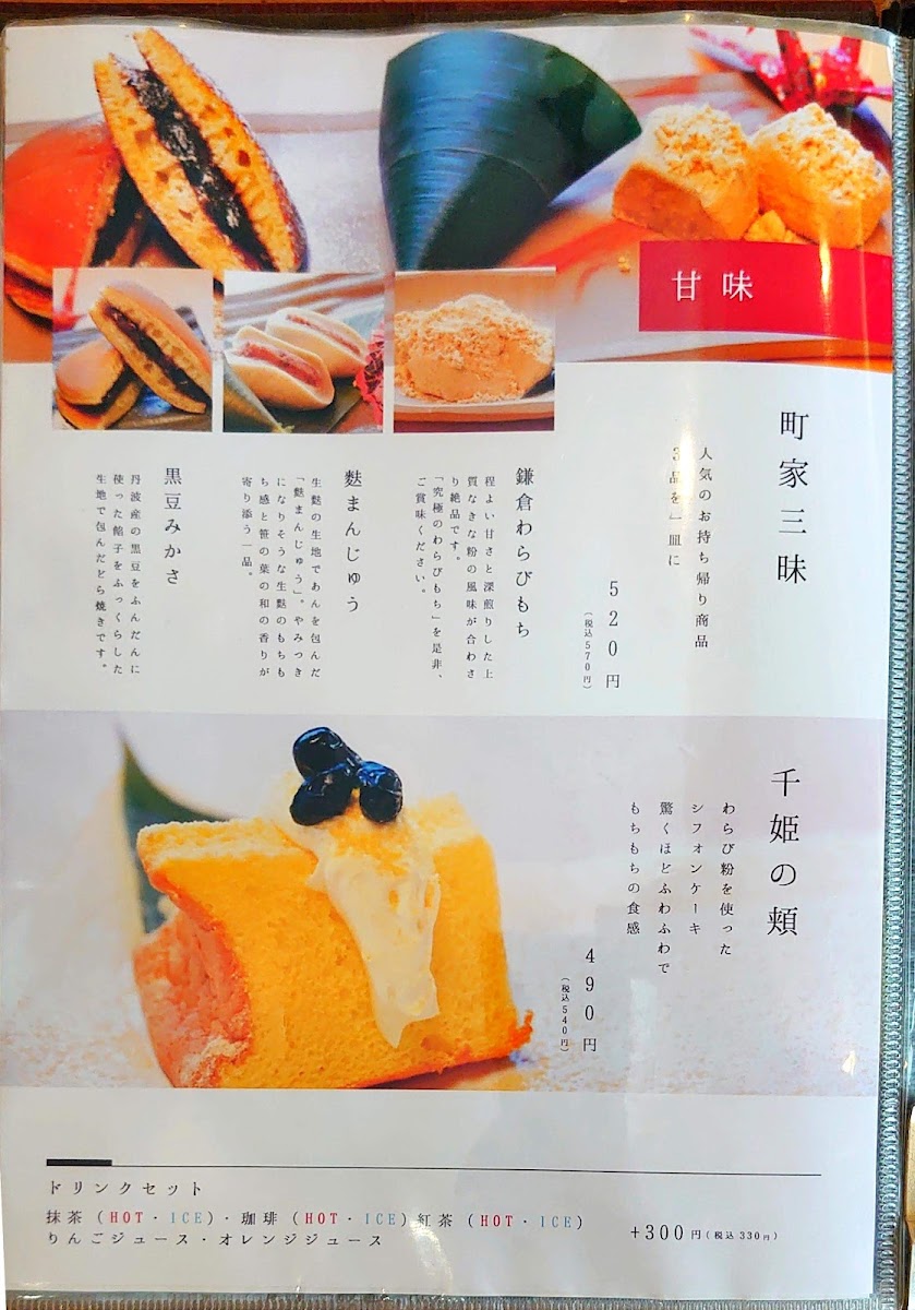 Machiyakafekamakura Kamedaten Menu